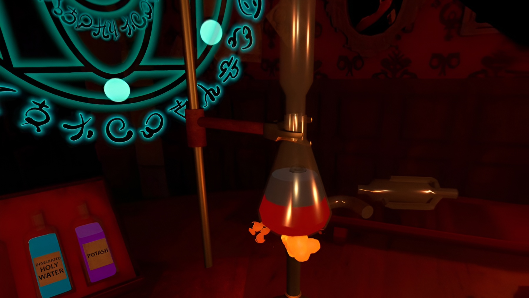 The fun is in the assembling of the glassware, and the transmutation of the liquids. On top of this is the archaic horror layer that fulfils a fantasy of being a Victorian alchemist discovering the secrets of the world for the first time.